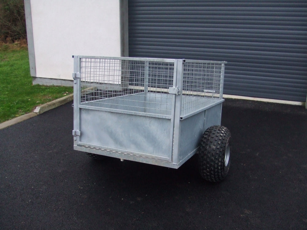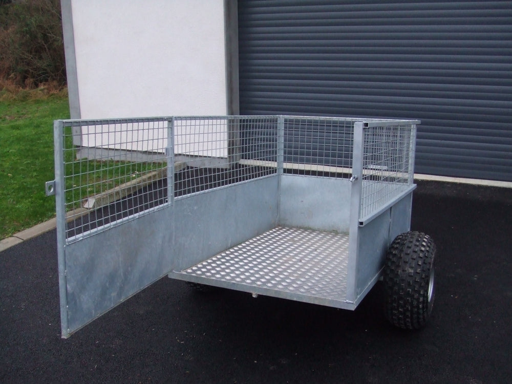 5ft x 3ft with alluminium plate floor. Swinging/removable back door. Hot-dipped galvanised.